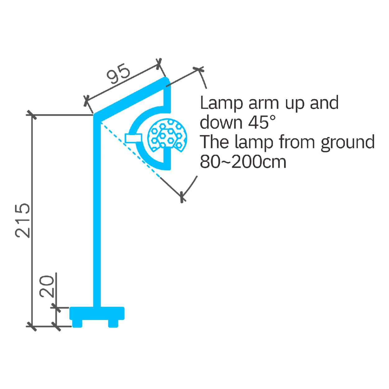 Радиус вращения лампы: ≥ 182 см