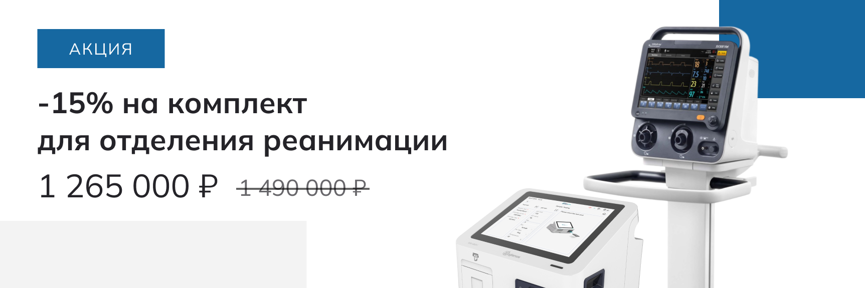 Этот комплект обеспечит надежную вентиляцию даже самых тяжелых пациентов в реанимации и позволит регулярно контролировать газы крови для своевременной коррекции респираторной поддержки.